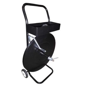 Pallebåndsvogn med hjul til stålbånd, enkeltspolet til max. båndbredde 32mm, inkl. aflæggerrum, massiv udførsel afrulning på tværs af kørselsretning, universiel indstilling med skruer