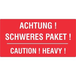 Pakkehåndteringsetiketter – “Forsigtig! Tungt – vægt over 20 kg” – papir, rød/sort, 100 x 100 mm (250 stk.)