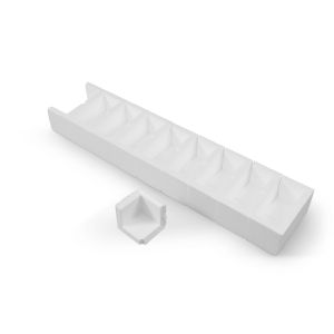 Flamingo, hjørnebeskyttere 75x75x27mm, 12mm tykkelse, RAMME HJØRNE, 24 STK. PR. STANG (2X12), 70 STÆNGER PR. BUNDT = 1680 styk, (min. 8400 styk/ordre). Kantbeskyttere fungerer som afstands- og stødbeskyttelse.