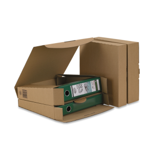 Katalog- og ringbindsæske, „PREMIUM“ DIN A4, brun, Til opvikling, lavet af ekstremt stabil bølgepap, findes i farverne brun og hvid. Denne udgave er hvid/brun.