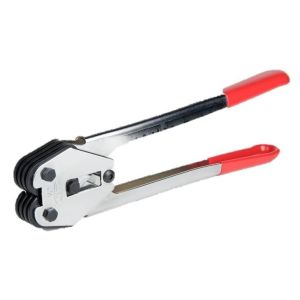 Båndstrammer, manuel pallebåndsværktøj til PP-bånd, 15-16mm bredde, bruger plombe 162805KU, bånd tykkelse fra 0,5mm, med integreret spænde-, lukke- og klippefunktion. Vægt 3,5 kilo.