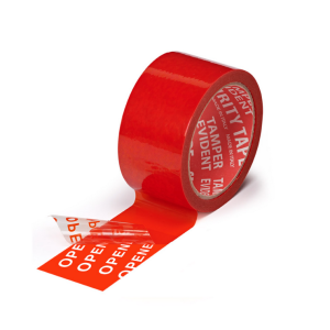 Sikkerheds tape Rød, "English version" acryllic 50mmx50M, 36 ruller/karton. Denne sikkerhedstape garanterer en absolut beskyttelse af varerne og sikkerheden ved forseglede pakker, for både afsender og modtager. Sikkerhedsbånd og etiketter afslører alle manipulationsforsøg, der efterlader synlige spor på de manipulerede overflader.