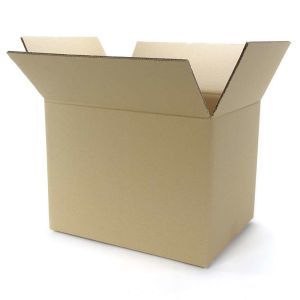 Brune papkasser med indvendige mål på 586 x 286 x 122 mm (længde x bredde x højde). Stabile papkasser af brun bølgepap.