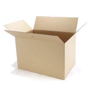 Standardkasse 0201, 2-bølger. Brun papæske med bund- og topklapper, der forbinder hinanden.