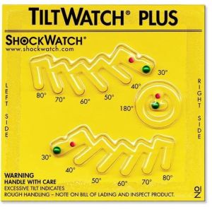 Tiltwatch Plus indikatoren er til produkter som kan tage skade ved mindre hældningsvinkler. Her kan du se hvor mange grader produktet er hældt til højre og/eller venstre side under transporten. Et separat felt angiver også hvorvidt produktet er blevet transporteret eller lageret på hovedet. En ikke magnetisk metalkugle viser definitivt det overskredne antal grader som godset evt. er hældt under forsendelsen. Der er fortløbende numre på hver enkelt tiltwatch plus, hvilket umuligør en manipulation.